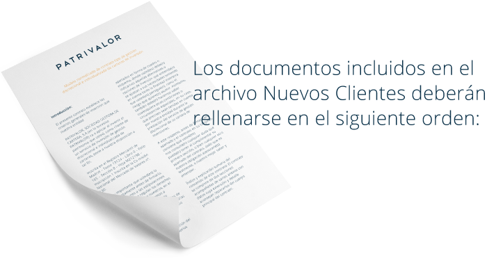 Este es el único documento del que Patrivalor debe recibir el original. Es necesaria la firma de todos los titulares (cotitulares) asi como de los autorizados, apoderados etc y fotocopias del DNI o NIF de cada uno.